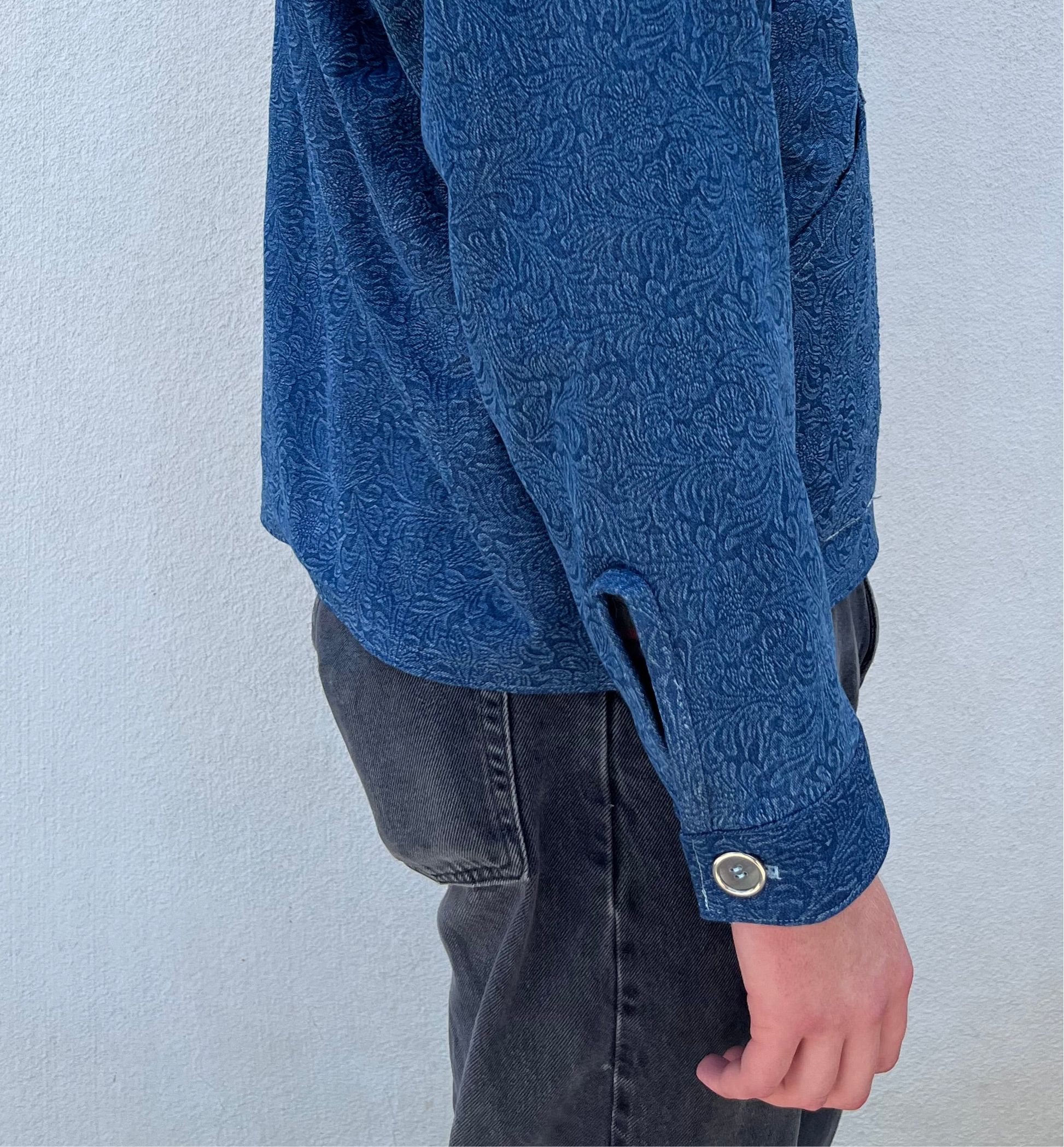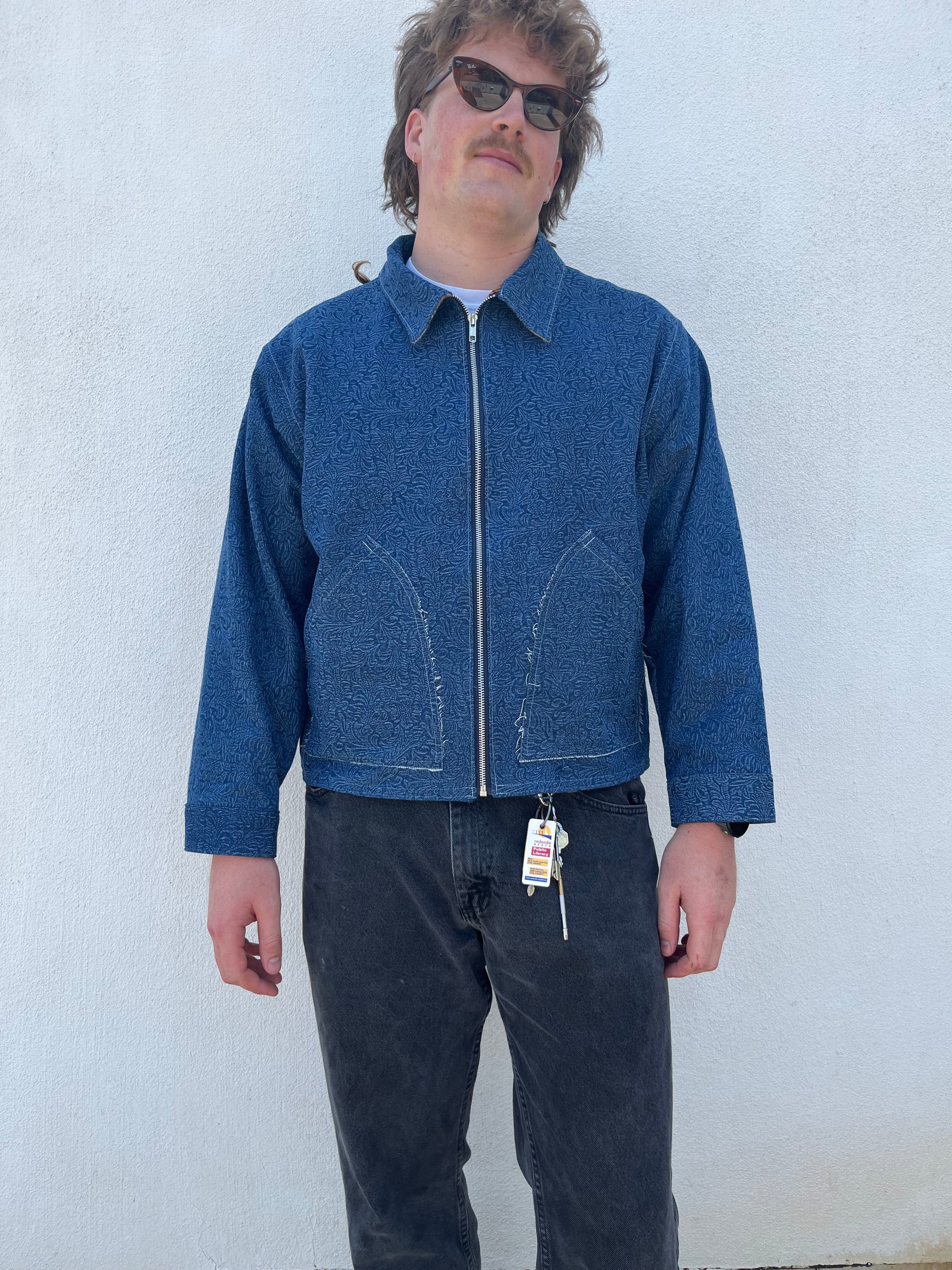Flannel lined denim jacket made from up-cycled denim. Fits size L/XL.